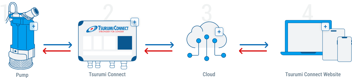 Få viktige verktøy for overvåking og styring av pumpesystemene dine, alt integrert i en pålitelig skyplattform. Abonnementet for TSURUMI CONNECT sikrer at du har kontinuerlig tilgang til avanserte skybaserte overvåkings- og kontrollfunksjoner. Lås opp hele potensialet til pumpesystemet ditt med TSURUMI CONNECT og hold driften i gang.